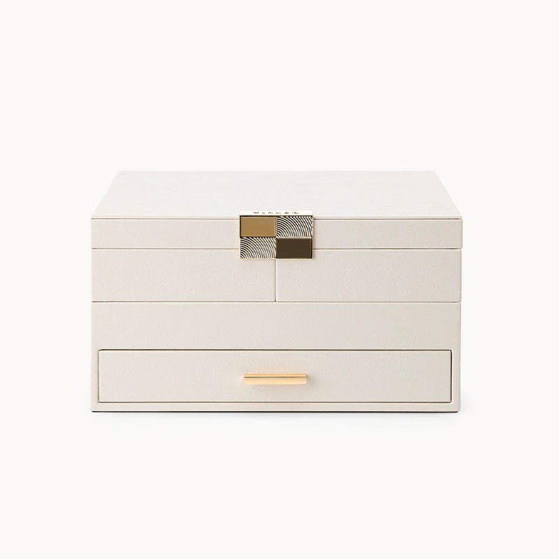Crafted with a modern, minimalist exterior in Ivory Grace or Rose Éclat, this box blends seamlessly with any decor. Leave it on display — it’s as beautiful closed as it is open.