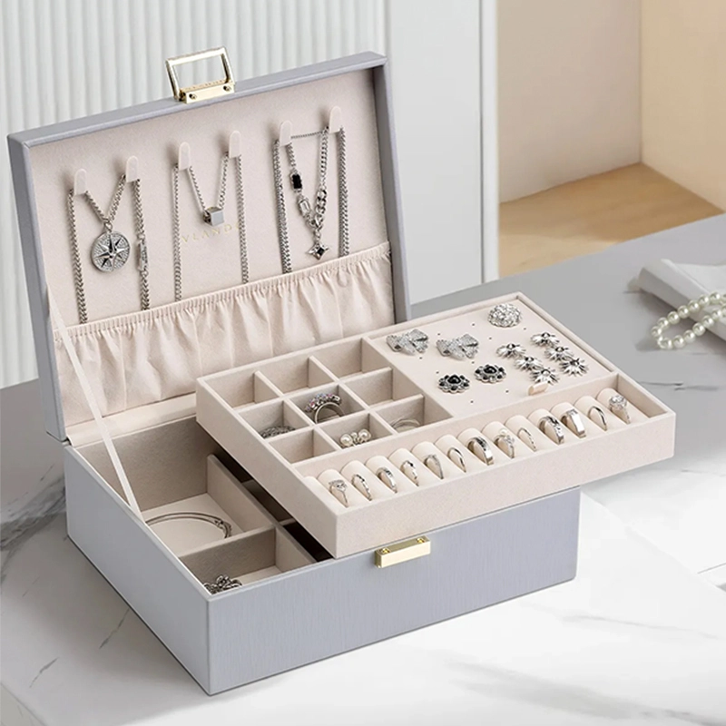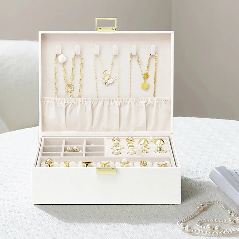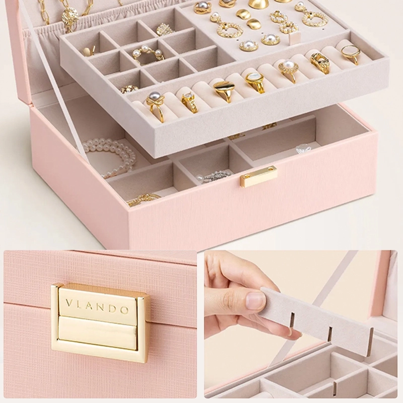Imagine starting your day with serenity. No tangled necklaces, no frantic searching—just a beautifully arranged display where every piece has its place. This vegan leather jewelry box for women transforms your routine into a graceful moment of calm. With its refined silhouette and thoughtful interior, it offers more than storage—it creates space for peace, elegance, and you.